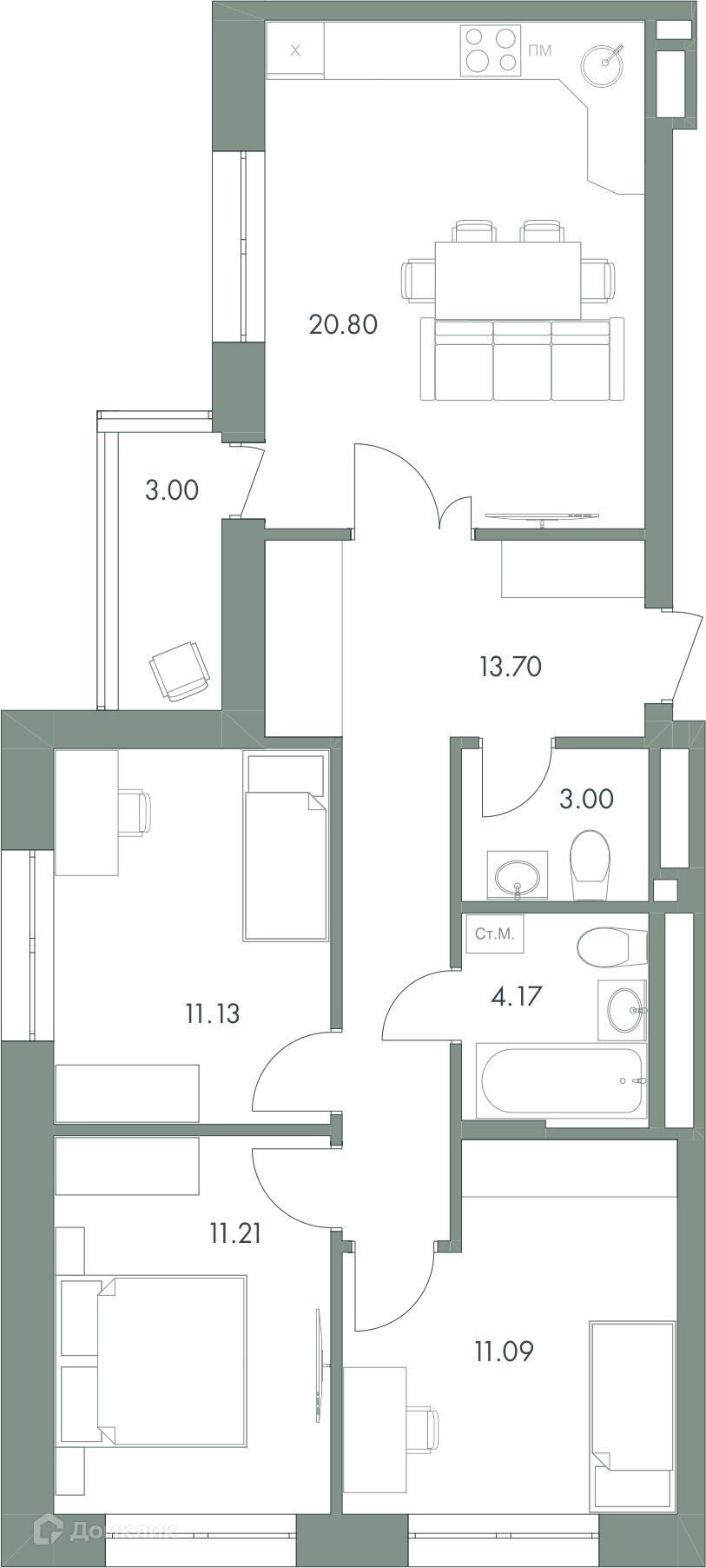 Площади квартир