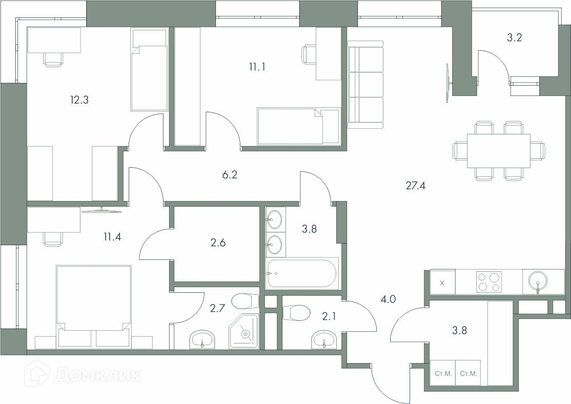 Площади квартир