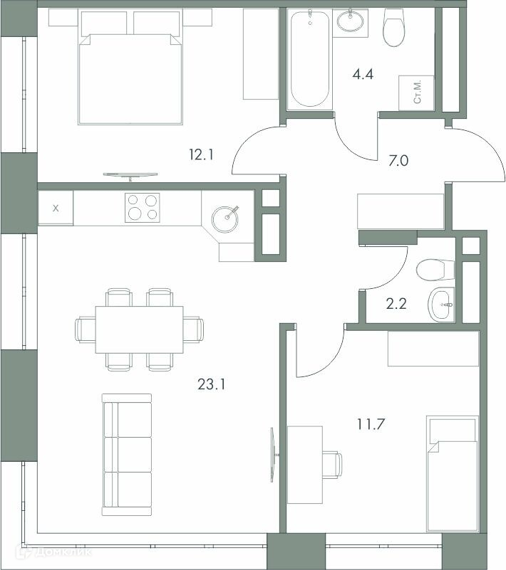 Доступна к покупке 2-комнатная квартира в современном жилом комплексе "ЖК Эко-квартал "Долина Ручьев"" 🏢. Квартира расположена на 3-м этаже 9-этажного дома. Отличный вариант для семьи.
