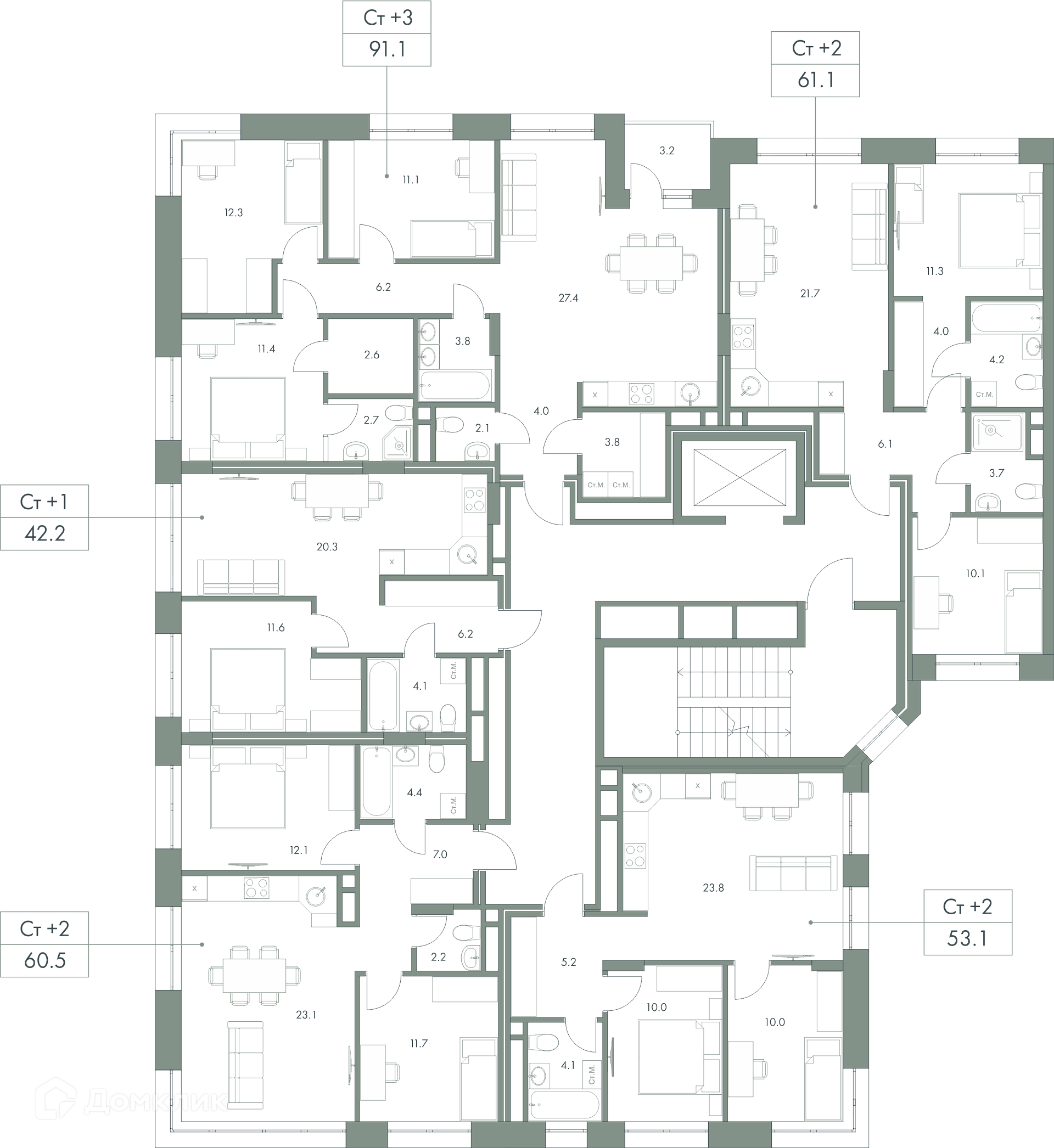 Площади квартир