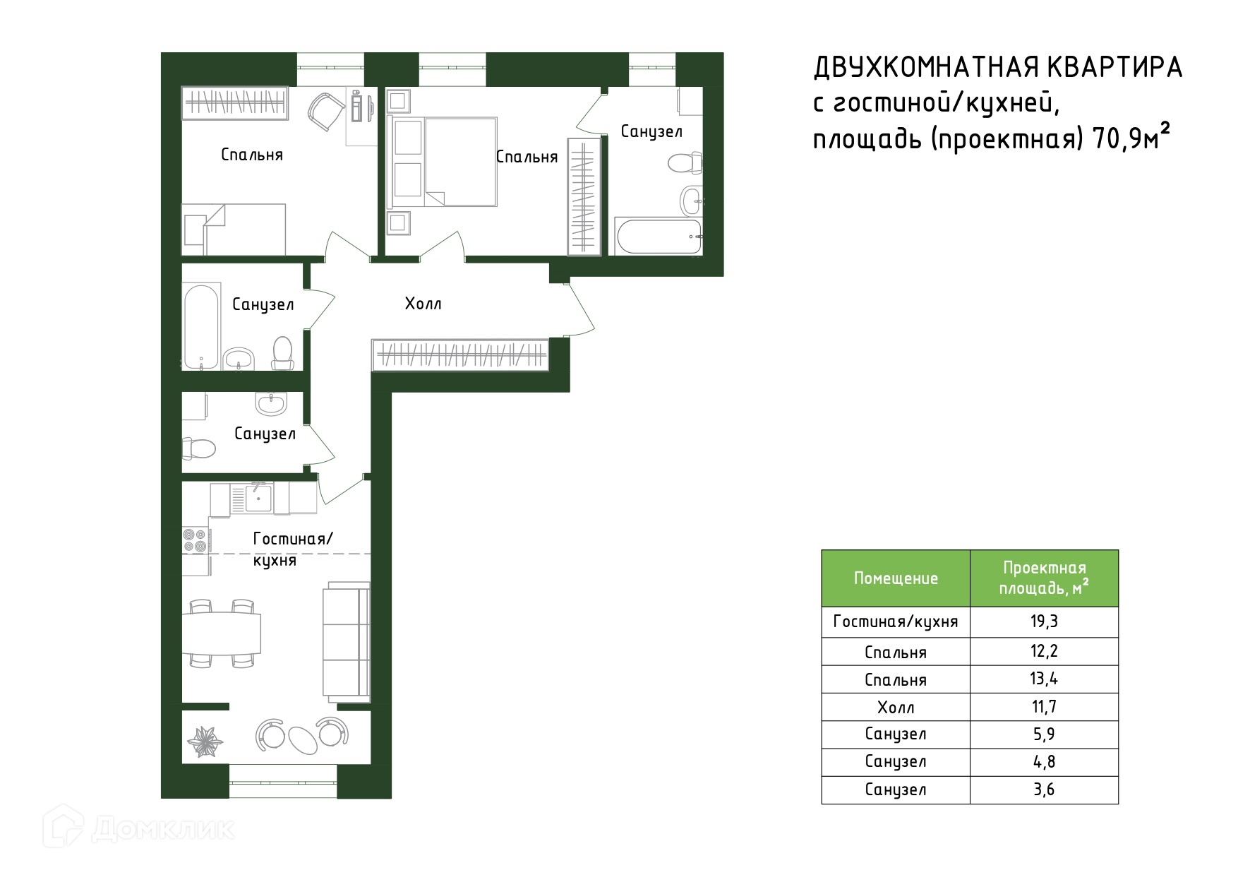 Площади квартир