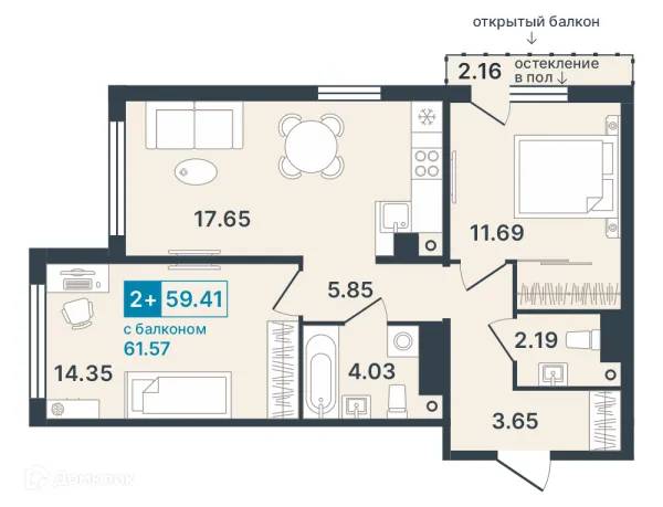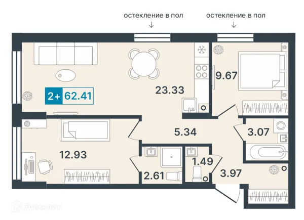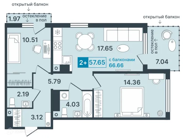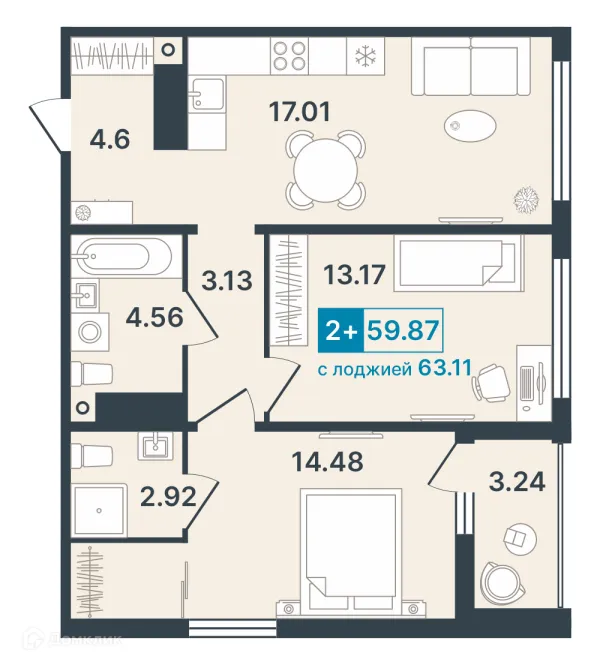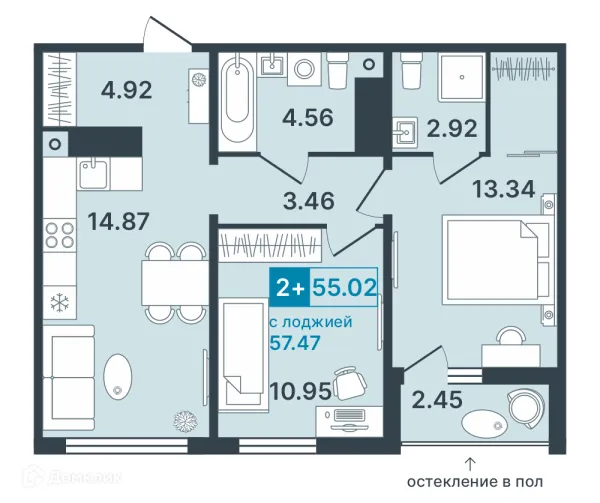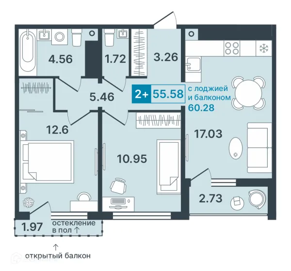 2 комн. квартира в Ханты-Мансийске в ипотеку от 59 048 руб/месяц